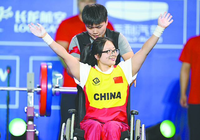 图② 昨日,在举重项目女子45公斤级比赛中,中国选手崔哲以116公斤的成绩夺冠并打破该项目亚残运会纪录。