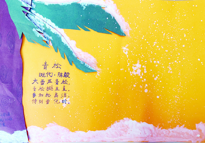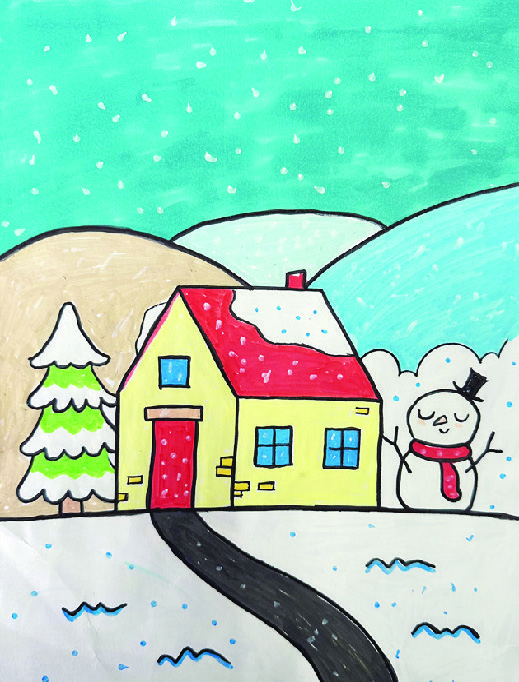 雪就像一个个调皮可爱的娃娃,一大群一大群落下来。我把手伸过去,想接住它,可是不一会儿,它就化成了水。冬天有时还会把世界变成一幅美丽的图画,寒风中,一棵棵掉光叶子的小树,冷得瑟瑟发抖。但是,当一片片小雪花飘落下来,就像给小树盖了一层软绵绵的被子。于是小树不再冷了,整个冬天都是温暖的。