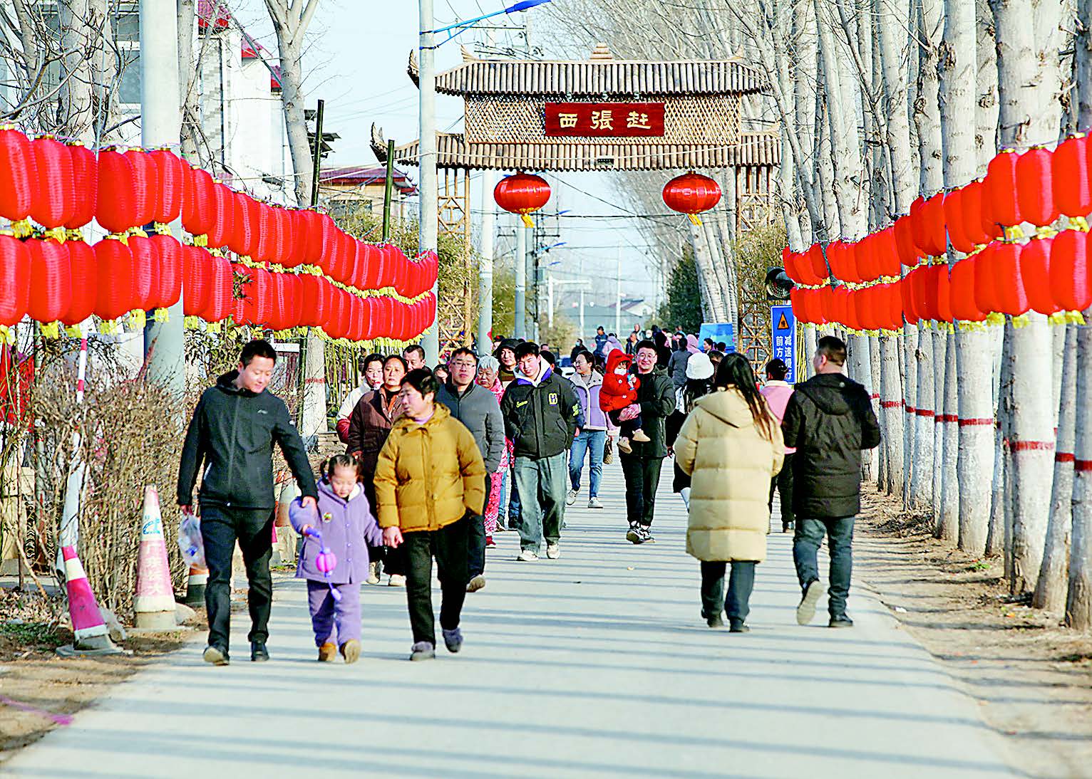 2月15日,博爱县磨头镇西张赶村,市民们在村里游玩。赏各式红灯笼、坐竹林小火车、品竹笋冰激凌……从农历正月初一到农历正月十六,西张赶村举办“新春竹笋美食节”,让游客品味“太行竹林水乡”不一样的年味儿。今年春节假期,西张赶村又一次登上央视《新闻联播》,进一步叫响了“太行竹林水乡”品牌,成为乡村旅游的网红打卡地。