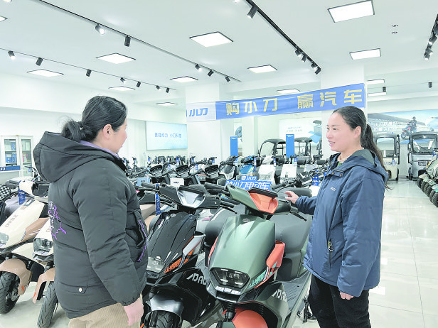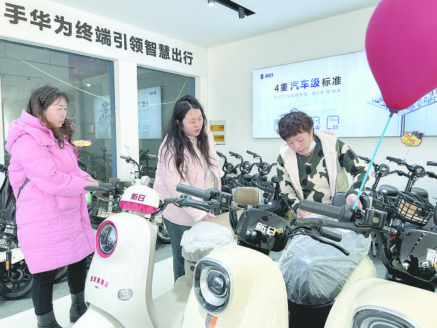 2月25日,市民在新日电动车焦作店选购两轮电动车。近年来,新日电动车加快智能、时尚、科技、个性化服务的步伐,并通过市场调研,深入洞察消费者需求,加大智能电动车新品研发投入力度,推出了波普时尚电动车系列。