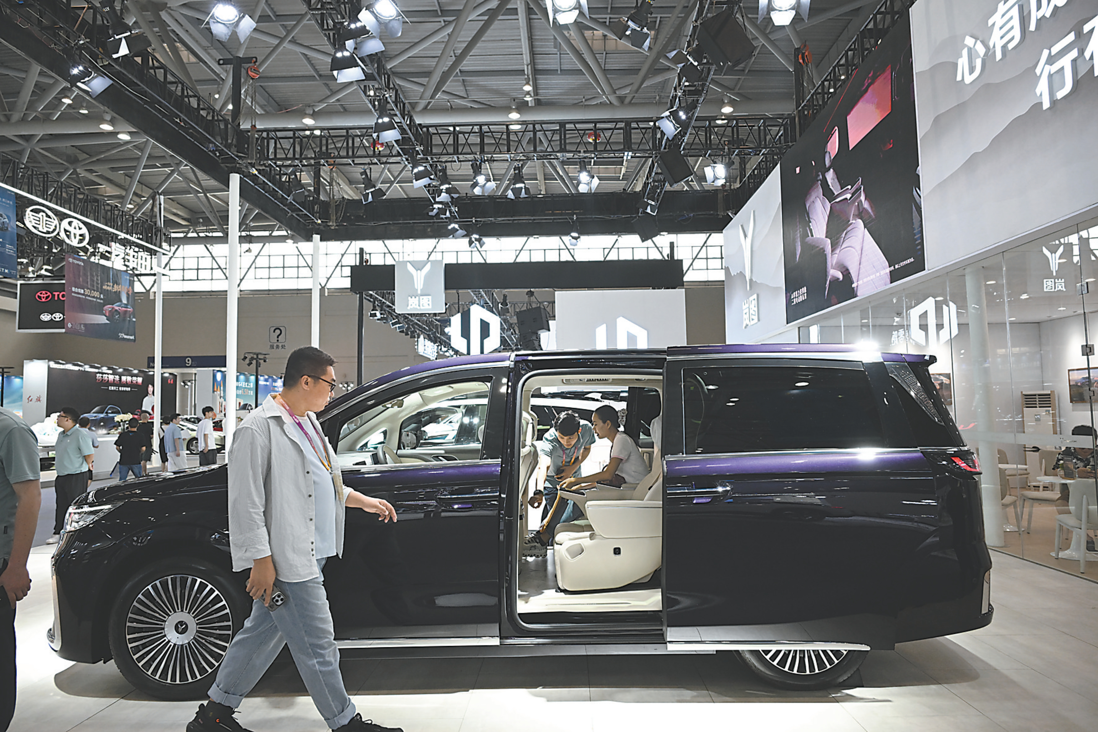 图① 9月5日,观众在智博会现场参观、体验新能源汽车。