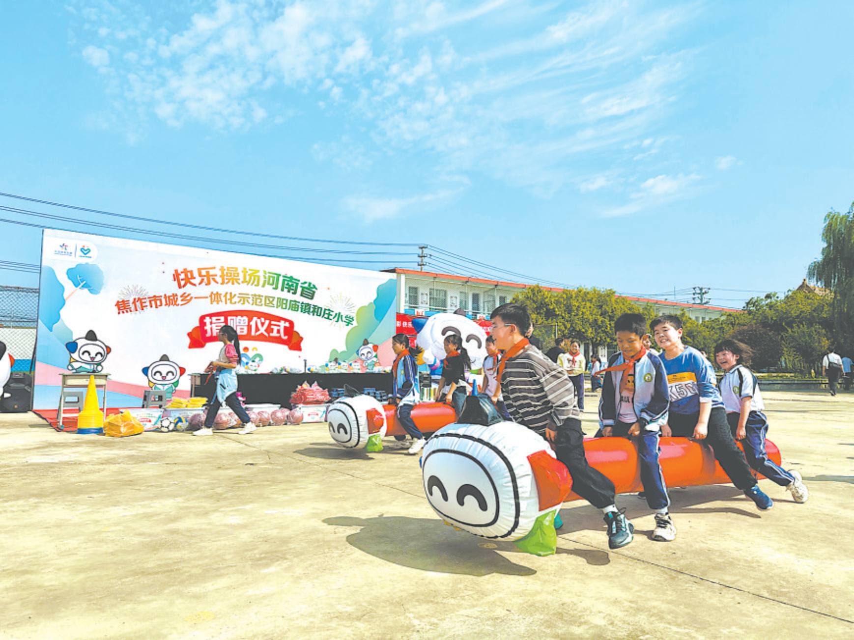 本报讯(记者赵改玲)秋风送爽,桂花飘香。9月28日、29日,河南体彩焦作分中心分别在孟州市谷旦镇谷旦小学、高新区和庄小学、沁阳市柏香镇高村小学开展了“公益体彩 快乐操场”捐赠活动,为这三所小学送去了体育用品及体彩大礼包。