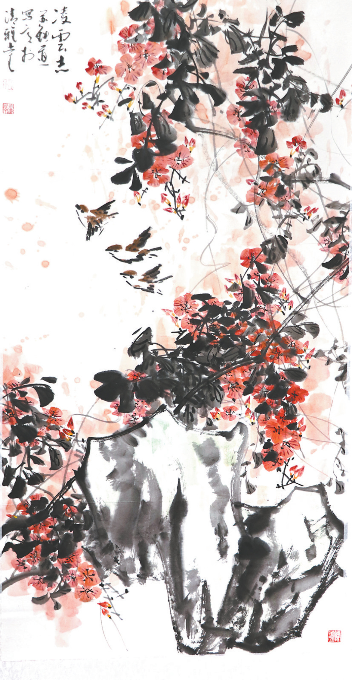 雪月寒香来 红梅待春归(国画)
